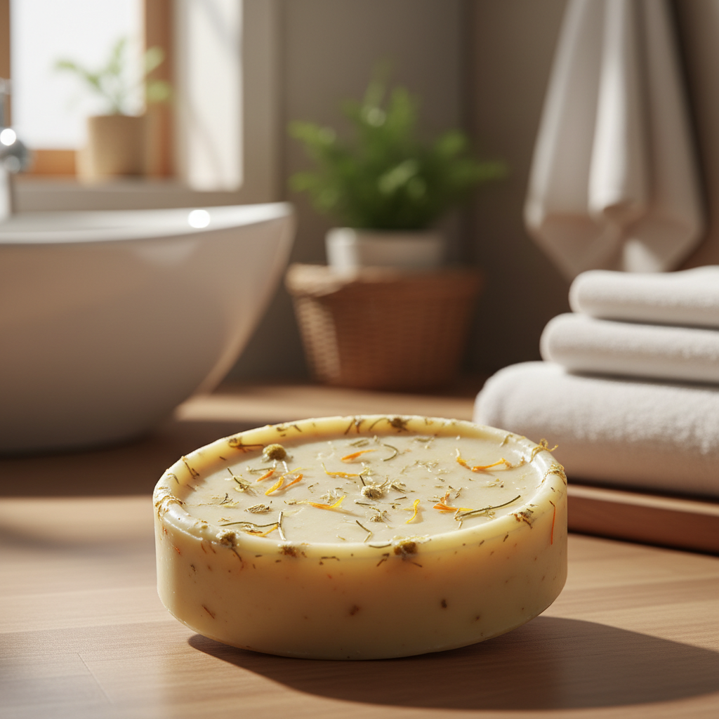Un jabón suave con manzanilla y caléndula, ideal para calmar y proteger la piel sensible.